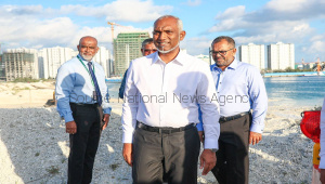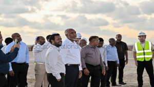 President inspecting the progress at the Hulhumalé Phase III land reclamation site